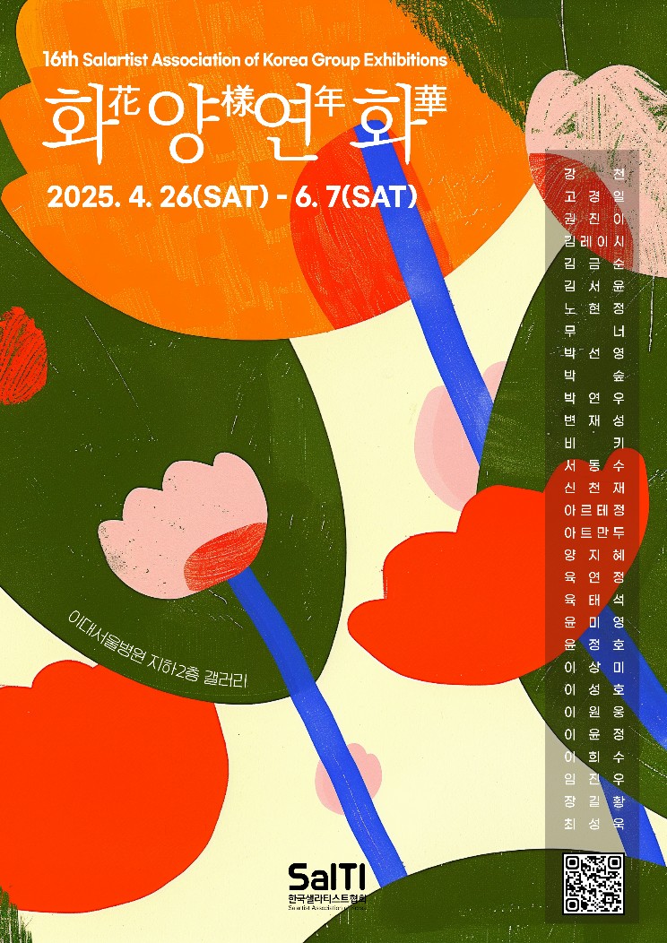 일과 예술의 경계를 넘나드는 창작자들, '샐라티스트(Salaries + Artist)'들이 선보이는 제16회 한국샐라티스트협회 단체전 [화양연화 花樣年華]가 2025년 4월 26일(토)부터 6월 7일(토)까지 이대서울병원 지하 2층 SPACE B-TWO에서 열린다.샐라티스트는 ‘Salaries’와 ‘Artist’의 합성어로, 생업에 종사하면서도 예술 창작활동을 지속하는 예술가를 의미한다. 전시를 주최한 한국샐라티스트협회(SAK)는 방송인, 건축가, 의사, 교수, 공무원, 엔지니어 등 다양한 전문 직업군으로 구성된 40여 명의 회원이 활동 중이며, 2011년 첫 전시를 시작으로 올해로 16회째 정기전을 이어오고 있다. 또한 해외 샐라티스트들과의 국제 교류전을 통해 활동 영역을 넓혀가고 있다.