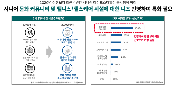 실제로 최근 국내 시니어 레지던스 시장에서는 ‘의료 서비스 제공’이 단순히 부가적 혜택이 아닌 중요한 마케팅 전략으로 급부상하고 있으며, 의료 서비스 제공 여부가 입주 결정에 큰 영향을 미치고 있다. 누구보다도 건강에 민감한 시니어 소비자들의 니즈를 충족시키기 위해 의료 서비스를 강조하는 전략은 필수적이다.