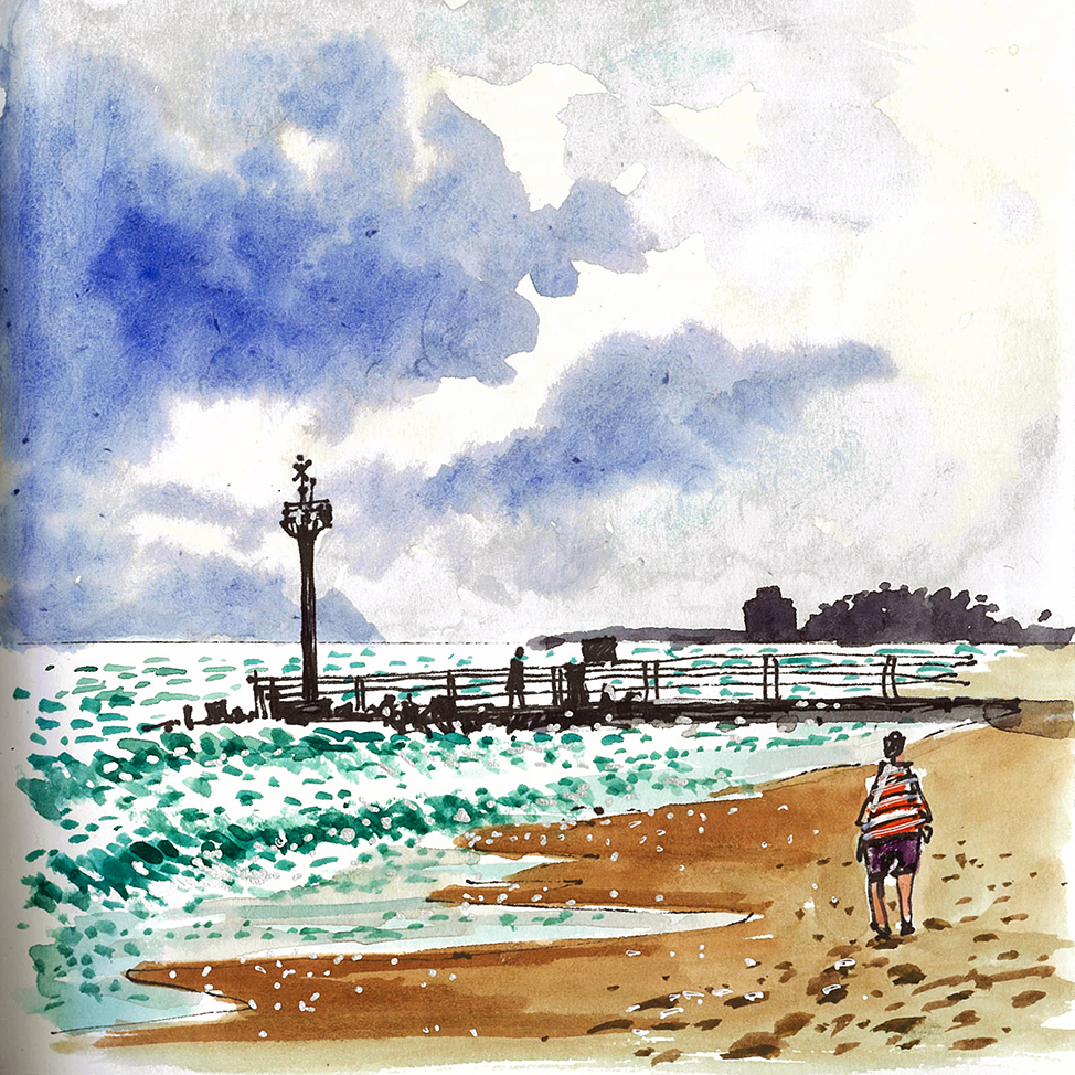 한여름, 모래 위를 맨발로 걷기 어려울 만큼 뜨겁게 달구며 작열하던 태양은 지금은 결별한 연인처럼 서늘하다. 그래도 계절이 바뀌면 다시 돌아올지도 모르니 헛된 기대라도 부여잡고 있으면 그리 섭섭하지는 않다. 바람과 파도와 해변은 서로 변하지 않는 천년의 약속을 지키며 지난 오랜 세월을 마주하고 있다. 태곳적부터 시간이 정지되어 보이는 이 곳, 철 지난 해변에 멍때리고 앉아 날 저무는 줄 모르고 있다.