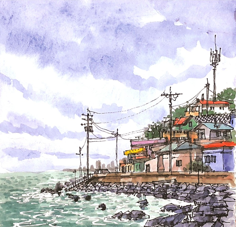 강릉은 서울역에서 KTX로 2시간이면 도착한다. 발길 닿는 대로 어느 해수욕장을 방문하더라도 바다는 익숙한 풍경을 선사한다. 넓은 모래사장에는 깊게 파인 발자국들이 묘한 문양을 만든다. 반복적인 파도를 보며 무심히 해변을 걸으면 시간 가는 줄도 모른다. “지나간 자욱 위에 또 다시 밀려오며....포말로 부서지며 자꾸만 밀려오나 .” 제2회 대학가요제에서 수상을 했던 노랫말이다.해안도로에서 주변을 돌아보면 바다마을과 하늘과 파도는 잘 어우러지는 풍경으로 3중주의 하모니를 연출한다.