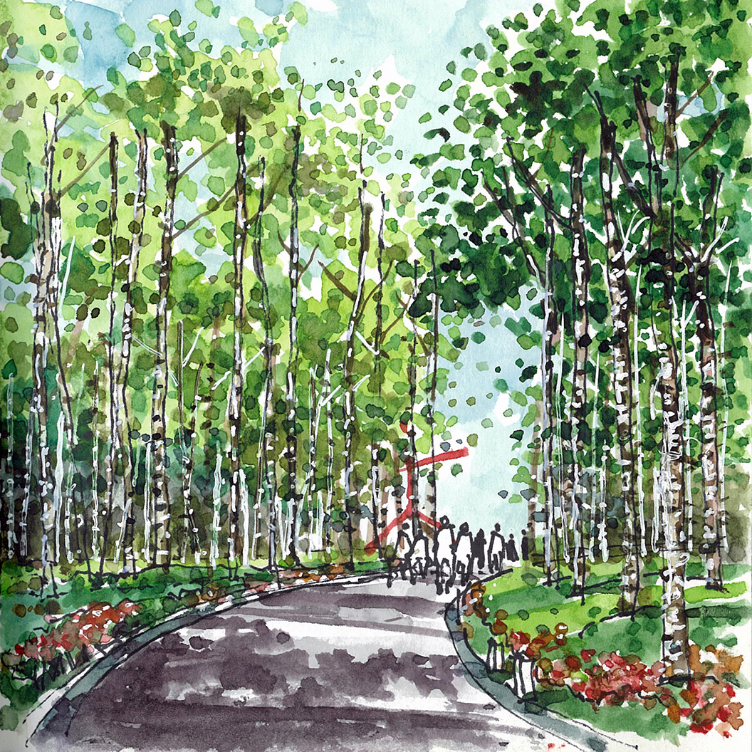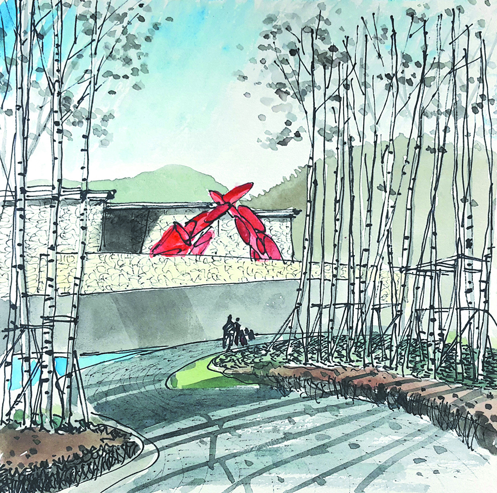 강원도 원주시 오크밸리 내에 뮤지엄 산이 있다. 일본 건축가 안도 다다오가 디자인하여 산 위에 지어진 미술관으로 하늘과 가까이 마주하는 곳이다. 종이와 미술을 근간으로 한 미술관으로 다양한 예술을 접할 수 있다. 산 정상에 위치한 미술관으로 향해 걸어가는 과정은 주변 경관도 훌륭할 뿐 만 아니라 마치 순례의 길처럼 마음을 정화시켜준다. 이 길에서 만나는 희고 가녀린 몸매를 지닌 자작나무들은 추운 겨울 날씨일 때 특히 창백하다. 수 공간에 다다라서 콘크리트 담장을 끼고 돌면 숨겨두었던 미술관이 모습을 드러내는데 대형 조형물이 마중을 나온 듯, 방문객들을 향해 붉게 상기된 얼굴로 환영하고 있다. 미술관 현관을 들어서면 자코메티의 거친 조각이 상징적으로 인간의 내면을 드러내 보이듯 서 있다.