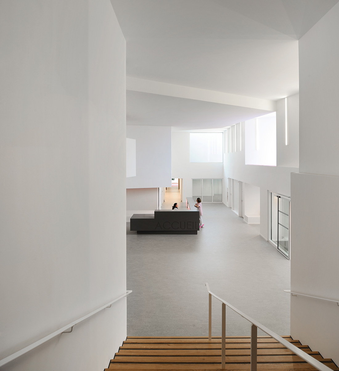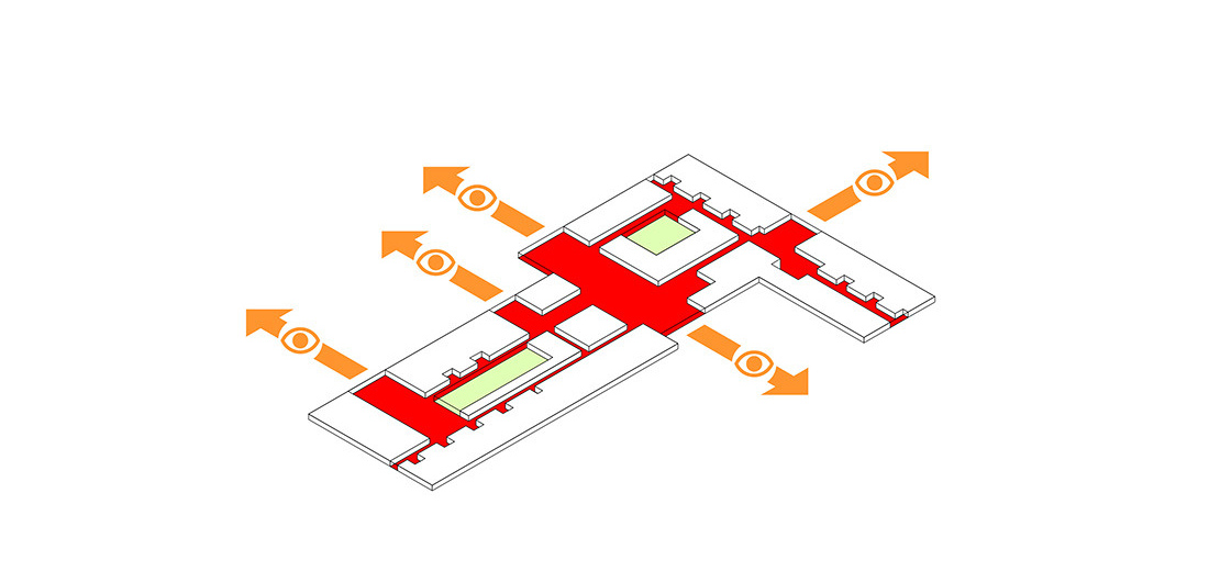 건물에는 두 개의 파티오가 깊이감을 더해주고, 모든 통로에는 자연광이 들어와 산책하기에 매우 이상적이다. 파티오는 방향이 바뀌는 곳마다 넓어지면서 따뜻한 핑크와 레드 계열로 꾸며진 휴식 공간으로 이어진다. 특히 인체공학적으로 설계된 벤치에는 거주자들이 함께 이야기를 나누며 소통할 수 있도록 편리하게 배치되었다.