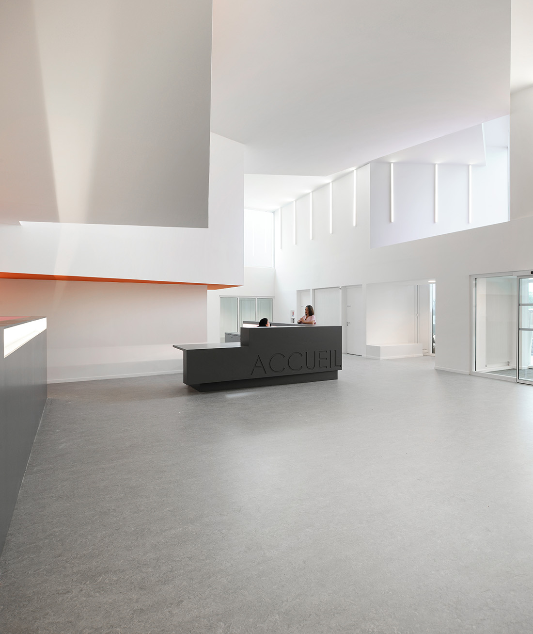 또한, 공용 공간들은 유동적이고 투명하게 만들어졌으며, 식당은 중앙 발코니 위치에 있어 로비를 바라보고 남쪽으로 넓게 열려 있다. 차양이 설치된 테라스도 추가되어 있어 거주자들의 삶의 질을 높여준다. 로비의 접수 공간은 벽면 곳곳에서 창을 통해 흐르는 채광으로 입체감을 드러내며 블랙컬러의 접수대를 더욱 돋보이게 한다. 특히 접수대는 전체 화이트 컬러의 내부 디자인에 포인트가 되어 외부 빛에 의한 시각적인 감성을 더욱 충만하게 이끌고 있다.