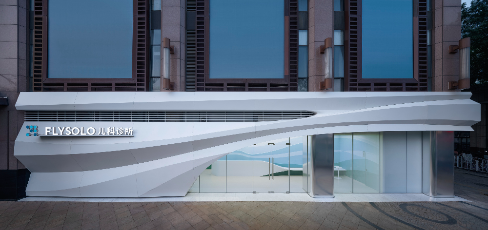 FlySolo는 아이들을 격려하고 응원하는 공간으로서, 그 정체성이 건물의 외관에 잘 드러나 있다. 입구를 감싸는 곡선형의 파사드와 내부의 파도 모양 그래픽은 서로 어우러져 따뜻하고 환영하는 분위기를 만들어준다. 특히, 진줏빛 화이트 알루미늄 프레임과 정교하게 제작된 곡선 패널들은 감정적으로 힘든 여정을 시작하는 가족들에게 새로운 가능성에 대한 영감과 희망적인 메시지를 전달하며, 아이들에게도 따뜻한 환영의 의미가 담겨 있다.