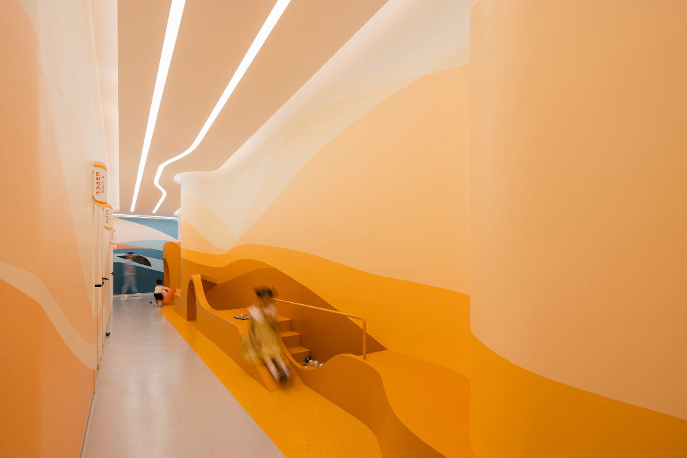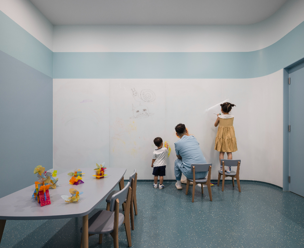 ©Wen Studio_UNStudio-Flysolo-21_wwwkits 치료실 밖 대기 공간에는 아이들이 즐겁게 놀 수 있도록 미니 슬라이드와 인터랙티브 좌석이 마련되어 있다. 또한, 아이들이 놀 수 있는 작은 공간과 대기 중인 보호자 및 가족들의 프라이버시를 보호해 줄 수 있는 공간도 별도로 마련되어 있다.