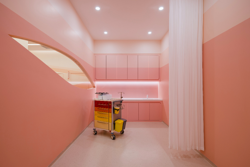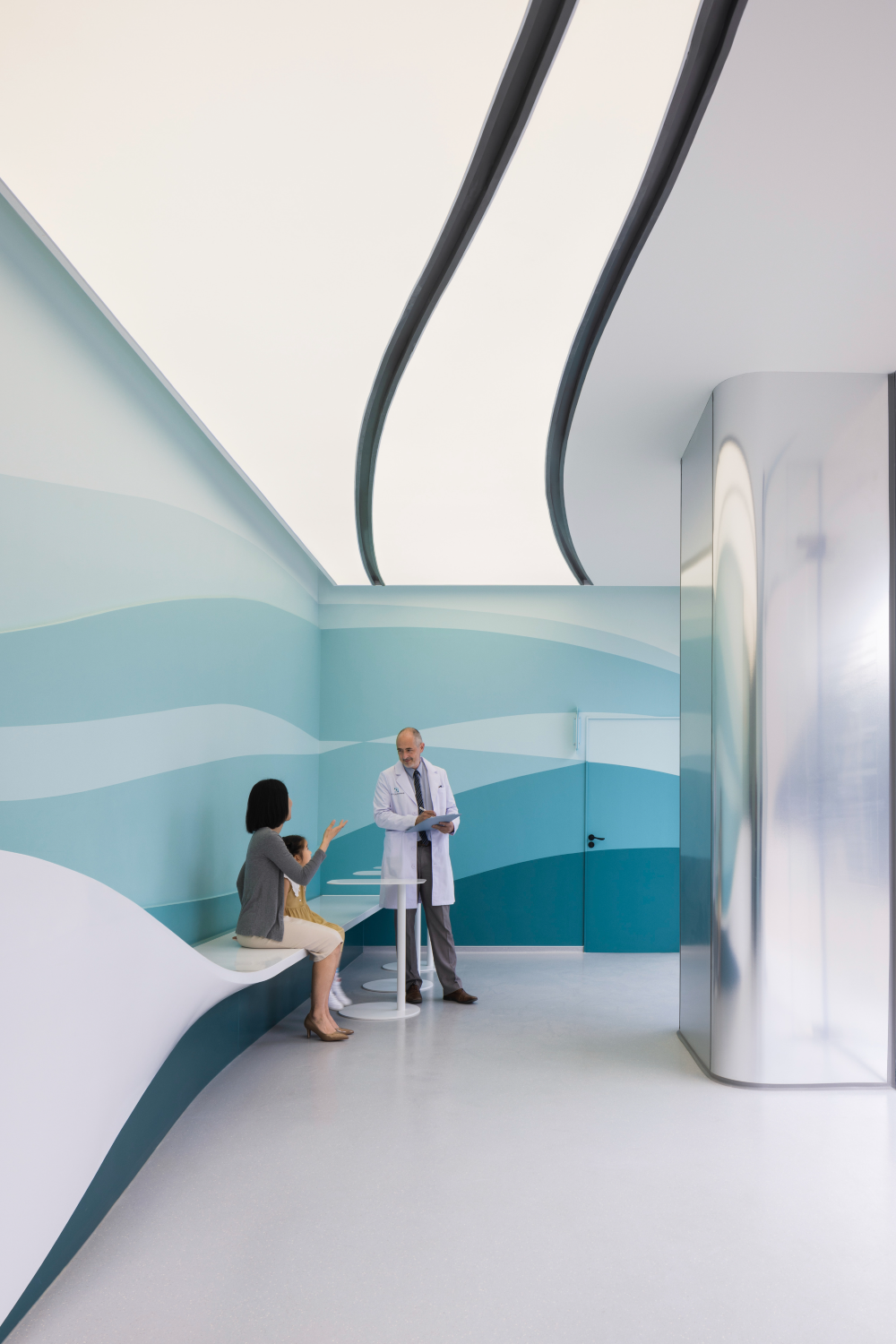 아동 환자와 부모가 불편함을 느끼는 또 다른 원인은 치료 시간 동안 분리되는 것이다. 이러한 이유로 치료실 벽에는 물결 모양의 벽면 그래픽을 본뜬 물결 모양의 창문을 일정 높이에 설치하여 부모는 안을 볼 수 있지만, 아이는 지나치게 관찰당하는 느낌을 받지 않도록 했다.