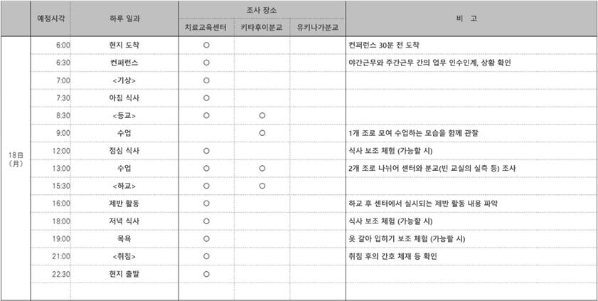 24시간 동안의 숙식형 체험은 상상을 초월할 정도로 고된 일이었습니다. 꼬박 24시간을, 다시 말해 이른 아침부터 늦은 밤에 이르기까지 시설 내에서 일어나는 일들을 체험하기 위하여 전날부터 현지의 인근 호텔에 숙박하고 동이 트기 전에 시설에 방문하여 늦은 밤까지 직원들의 업무상을 지켜본 뒤 다시 호텔로 돌아가는 2박 3일의 일정이었습니다.
