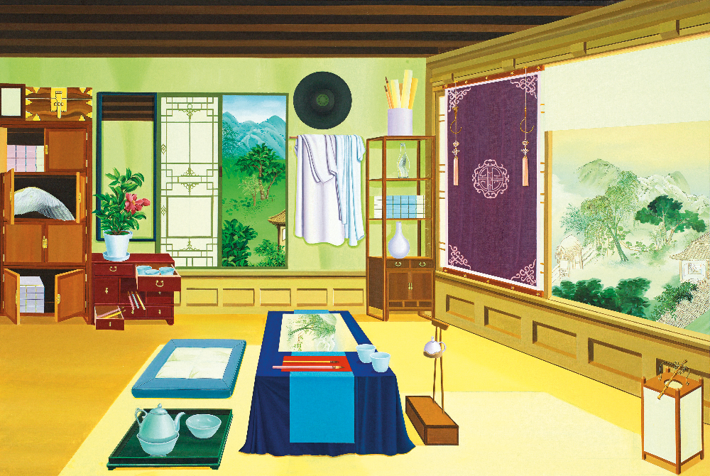《생태의 집 – 한옥》남경민, 겸재 정선의 화방, 2012, 리넨에 유채, 130×194cm