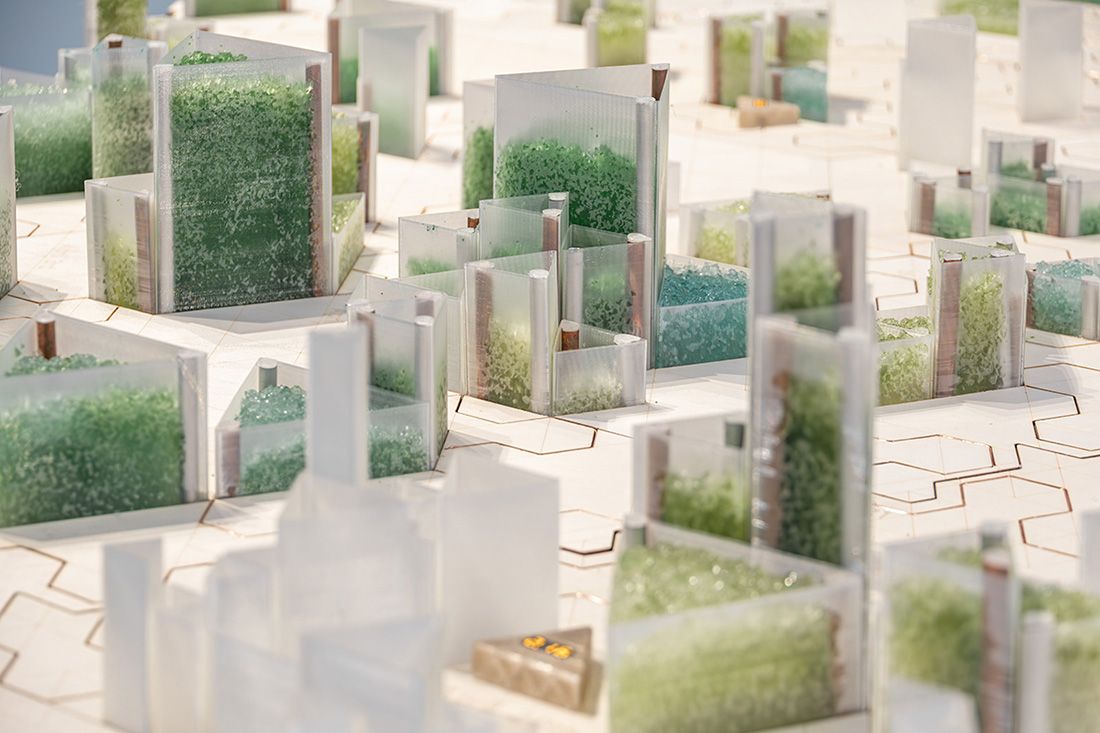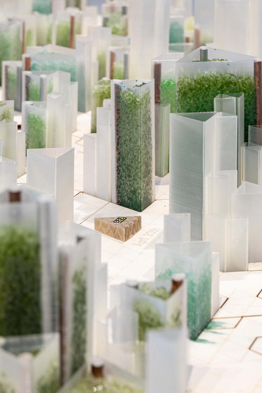 ecoLogicStudio_CryoflorE © Synthetic Landscape Lab (Xiao Wang) 03 2년마다 열리는 이 비엔날레는, ‘Soleil·s’라는 주제로, 전시회뿐만 아니라 레지던시, 문화 홍보 활동, 다양한 이벤트를 통해 인간과 물질문화, 그리고 태양과의 관계를 조명한다. MUDAC의 자연 채광이 가득한 전시장에는 이 프로젝트가 대규모 도시 모형 형태로 펼쳐지며, 살아있는 생촉매 세포로 작동되면서 성장하는 도시 풍경을 제안하고 있다.